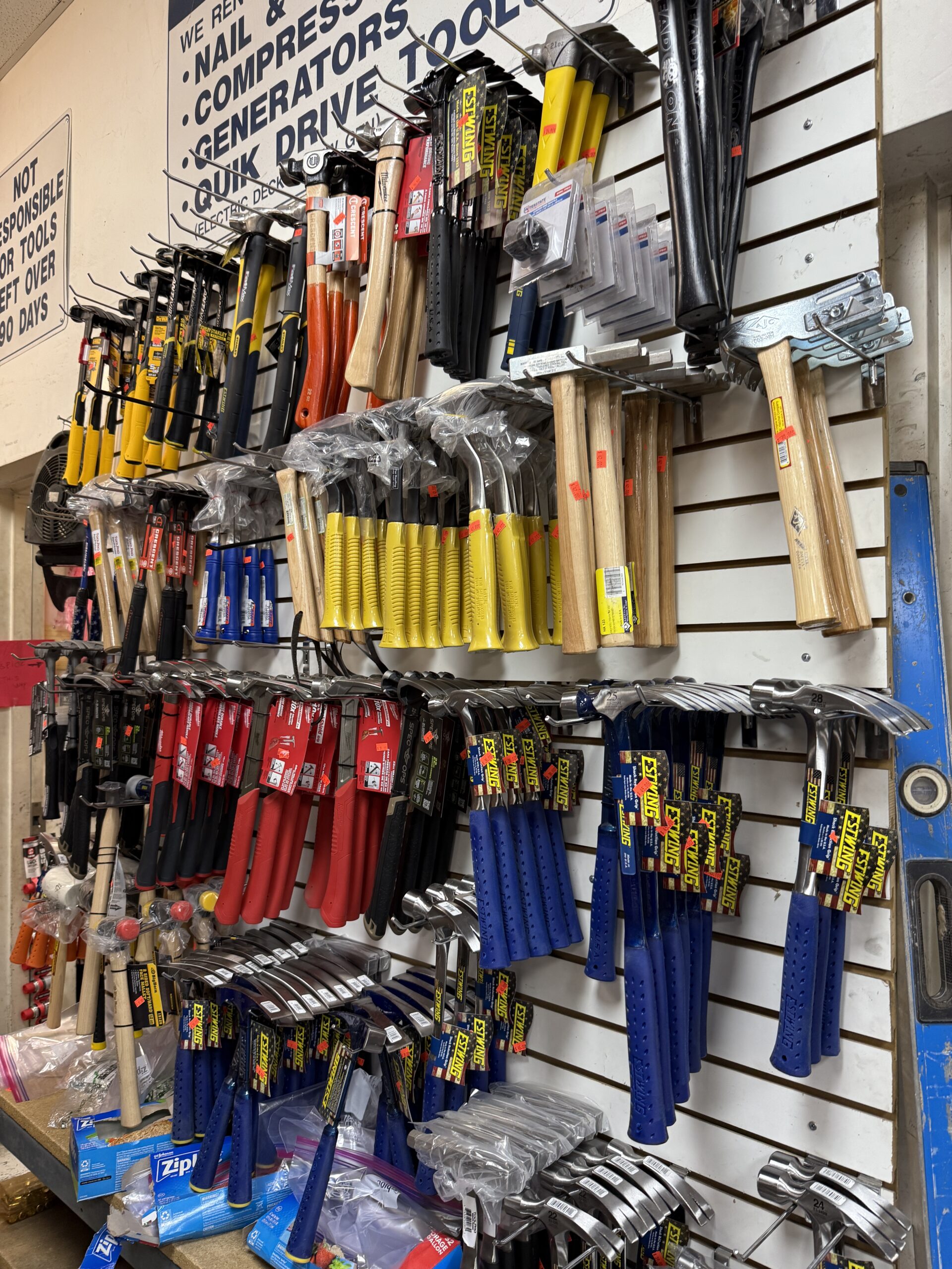 - Fasteners in bulk: nails, screws, bolts, and anchors
